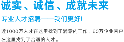 優(yōu)質(zhì)的服務(wù)源于對產(chǎn)品的執(zhí)著,英才網(wǎng)聯(lián)一直走在專業(yè)人才招聘的服務(wù)前沿,以傳統(tǒng)網(wǎng)絡(luò)招聘與移動互聯(lián)相結(jié)合的方式重新定義“互聯(lián)網(wǎng)+招聘”的模式,以大數(shù)據(jù)信息化處理人與崗位的匹配關(guān)系。我們相信,真正的服務(wù)最終是人的服務(wù),服務(wù)在人,成事在心!英才網(wǎng)聯(lián)愿與您攜手同心,共創(chuàng)輝煌。